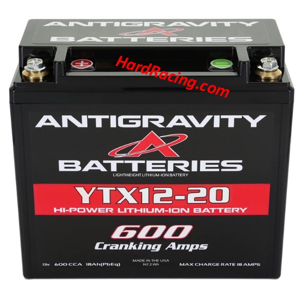 At a massive 600 Cranking Amps, ultra lightweight 4.2 lbs and an extremely compact size, this battery offers the greatest power in the smallest package you can find for motorsports. The Antigravity YTX12-20 is best used for applications where extreme POWER in an ultra compact size is desired. Examples are Large V-Twins Motors, Touring bikes, Adventure Bikes and Race Cars. The YTX12-20 DOES NOT have our Re-Start built-in jump-starting feature but offers a deeper level of Discharge for more usable Capacity and more Power for Cranking.