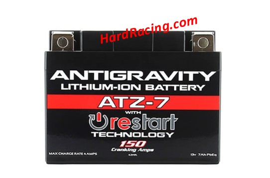 The Antigravity ATZ-7-RS is a hi-power lightweight Lithium-Ion battery, built with our groundbreaking RESTART Technology (built-in jump-starting) so you won’t ever get stranded with a dead battery again! Directly replaces the OEM YTZ7S, YTZ5 and others. Most off-road bikes use this size as well as some street bikes.