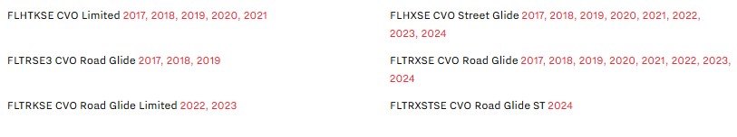 FLHXSE CVO Street Glide 2017, 2018, 2019, 2020, 2021, 2022, 2023