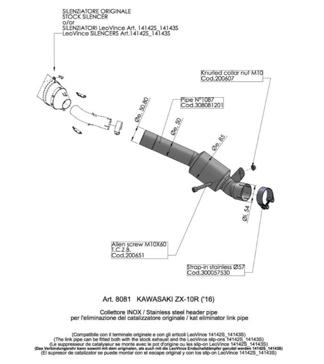 Leo Vince 8081 CAT ELIMINATOR (LINK PIPE) for Kawasaki ZX-10R/RR Ninja 2016 - 2020
