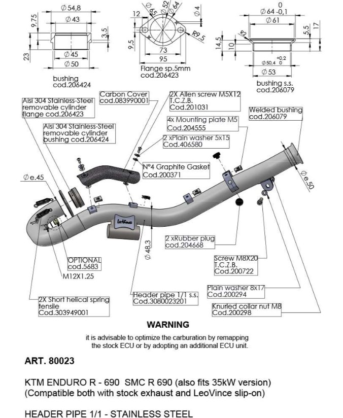 Leo Vince 80023 HEADER PIPE for KTM 690 Enduro R / SMCR 2019 - 2024