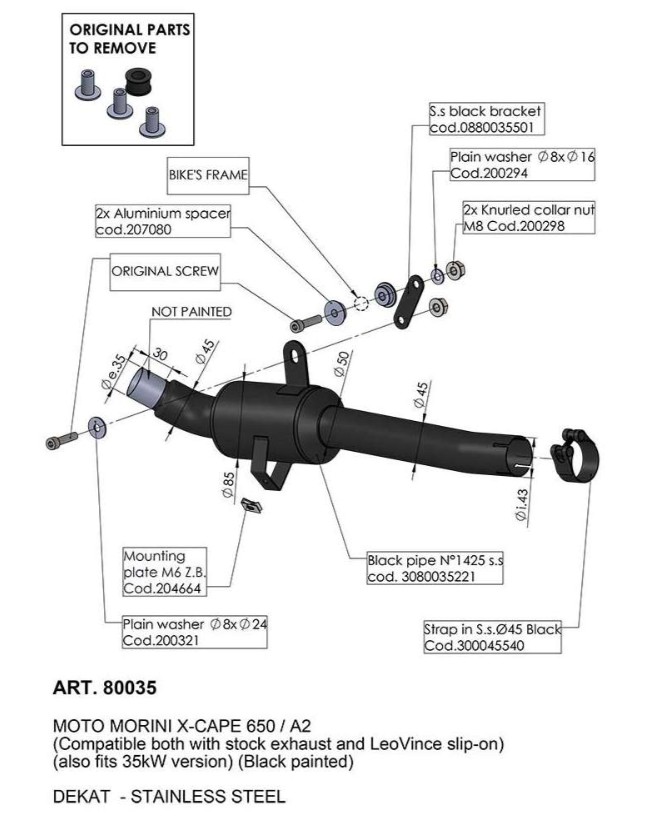 Leo Vince 80035 CAT ELIMINATOR (LINK PIPE) for Moto Morini X-CAPE 650/A2 2021 - 2024