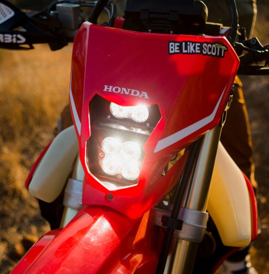 Looking to add performance on and off the street to your 2019-2024 Honda CRF450L/RL? This is the kit for you. It utilizes your factory wiring and bar switch, giving you a true plug and play setup with Hi/Lo functionality. The Hi/Low functions with the S2 only as low beam, and both Squadron/S2 on High. The angle of the S2 differs by pointing the beam downward 2 degrees in order to project a pattern better suited for closer range riding, and the Squadron beam is pointing farther down the trail to create a pattern for distance. The kit includes a mounting bracket that uses factory tabs, one Squadron Pro rated at 4,095 raw lumens, and one S2 Sport rated at 1,581 raw lumens.