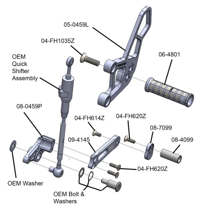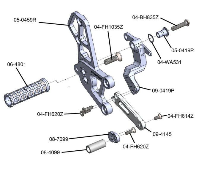 05-0459B Woodcraft Rear Sets (No Folding Toe Pieces) - Yamaha R9 '24 - 25 Black (Std or GP Shift)