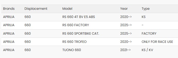 Fits:  2020+ Aprilia RS 660 Models (SEE APPLICATION CHART)