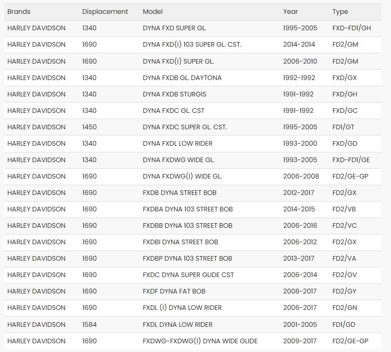 ** Please reference Application Chart to the left **